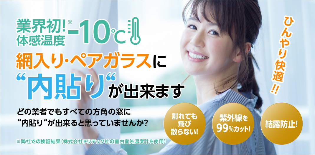 我が家は防火指定地域で網入りガラスになっており夏が暑くて困っていました。そこで遮熱フィルムを貼りたいと依頼した所、網入りガラスに内側にフィルムを貼ると熱吸収してガラスが熱割れしてしまうと言われました。